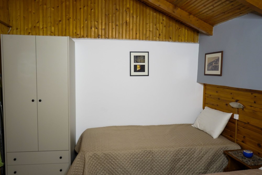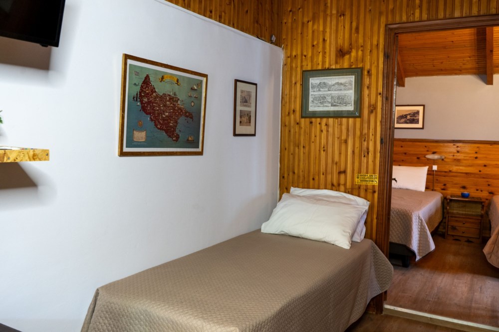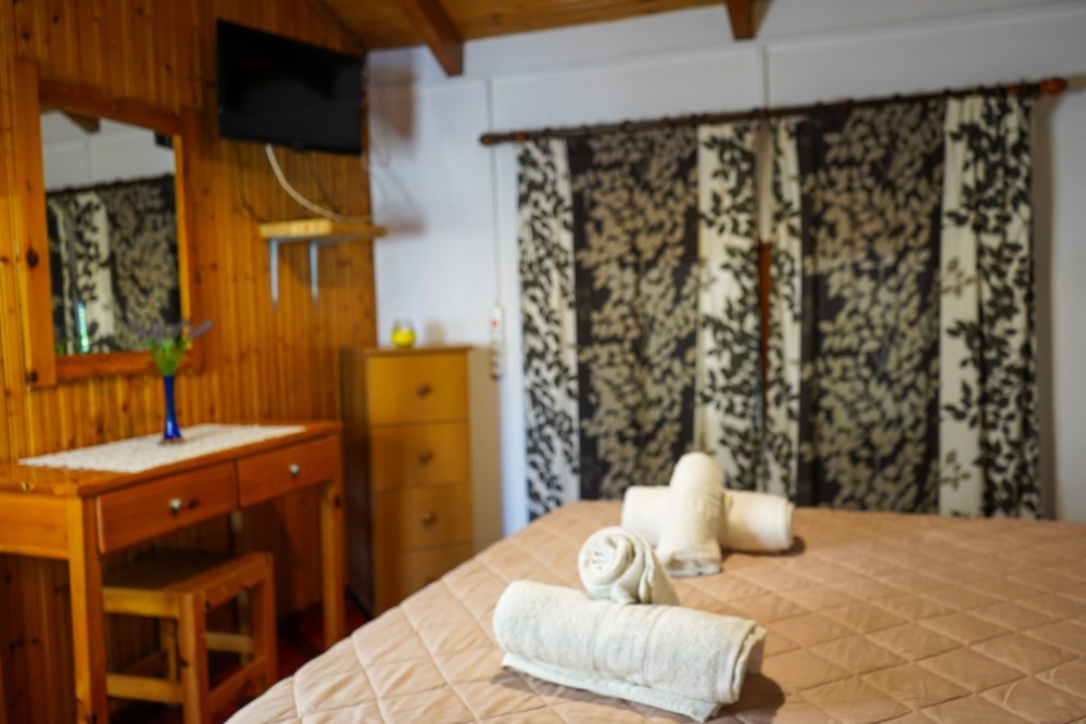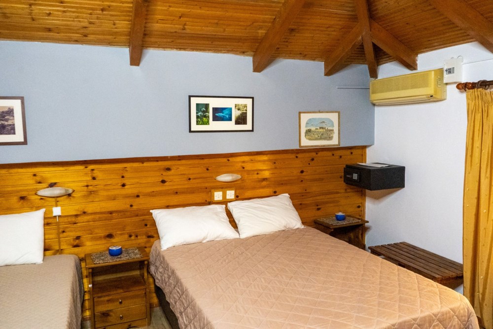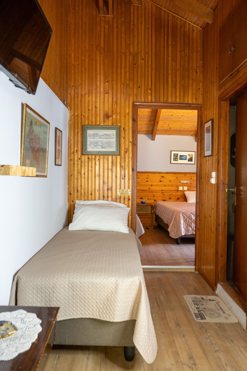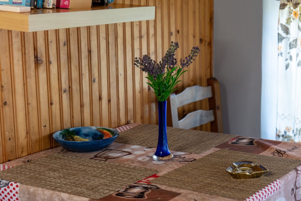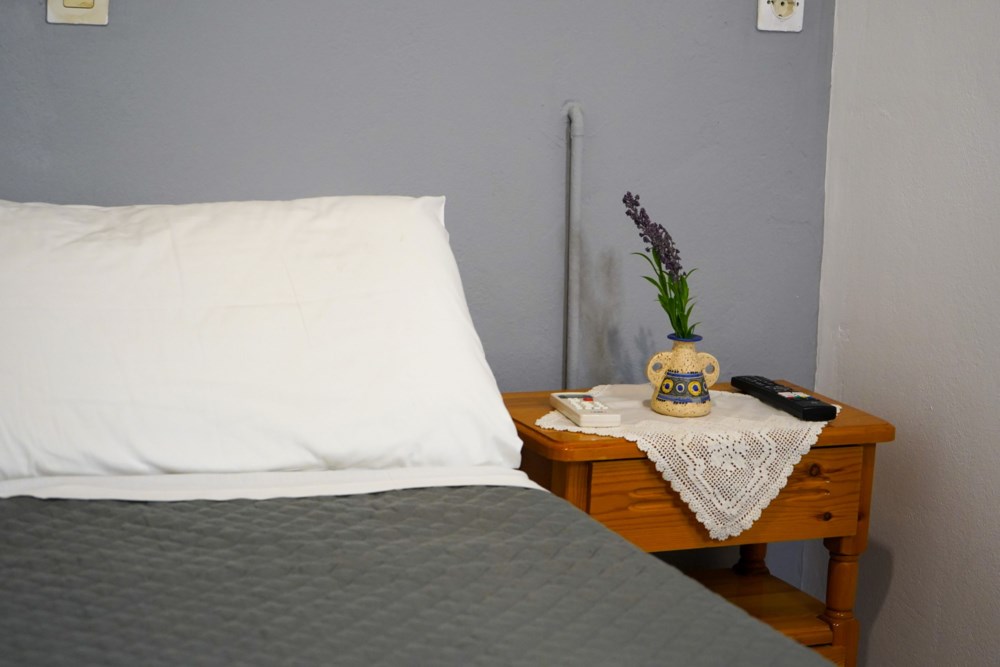 Also located on the first floor, Studio No. 3 is a 1 bedroom apartment. It features a bedroom with a queen-sized bed, two single beds in the kitchen, a bathroom with a shower, a fully equipped kitchen (refrigerator, 2 kitchen stoves, kettle, toaster, utensils, cutlery), a dining table, TV, air-conditioning, WiFi access, as well as a furnished veranda with a view of the surrounding area. Studio No. 3 can accommodate up to 4 guests, and a baby cot can be added upon request.