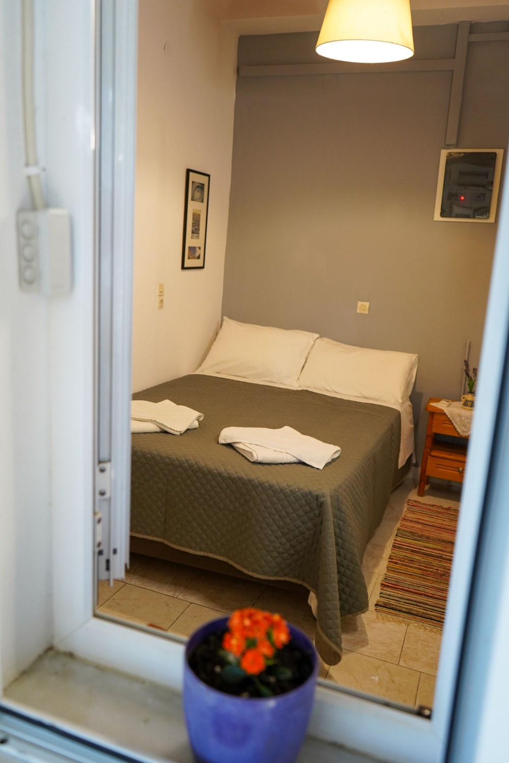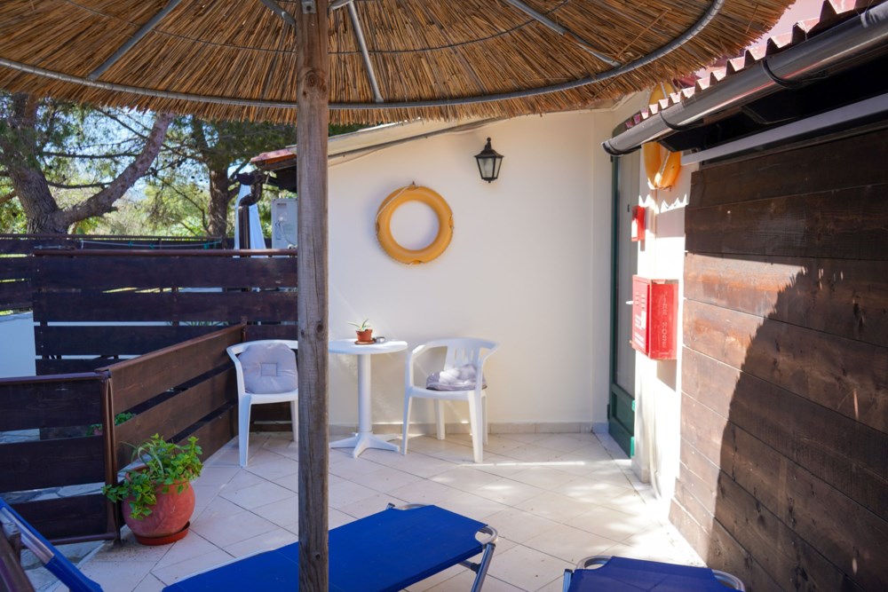 On the first floor, the guests will find Studio No. 2, which is a 1 bedroom apartment that can sleep up to 2 guests. There is a bedroom with a queen-sized bed, a bathroom with a shower, a fully equipped kitchen (refrigerator, 2 kitchen stoves, kettle, toaster, utensils, cutlery), a dining table, TV, air-conditioning, WiFi access, and two furnished verandas, with a view of the sea and the surrounding area. A baby cot can be added upon request.